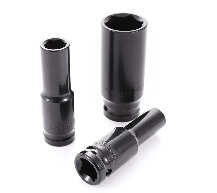5、 根據(jù)套筒的使用頻率和使用的場(chǎng)合來分一般有手動(dòng)套筒(配合棘輪扳手手動(dòng)使用的)和風(fēng)動(dòng)套筒(配合風(fēng)炮或電動(dòng)工具使用的)。手動(dòng)套筒表面處理一般為鍍鉻的,也就是說白色的,材質(zhì)一般為50BV30;風(fēng)動(dòng)套筒表面處理一般為電泳或發(fā)黑,也就是說黑色的,材質(zhì)一般為鉻鉬鋼,由此不難看出,同一種使用條件下風(fēng)動(dòng)套筒的使用壽命更久一些。